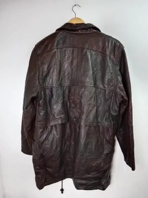 Chaqueta de piel marrón oscuro con cinturón vintage 90s L XL