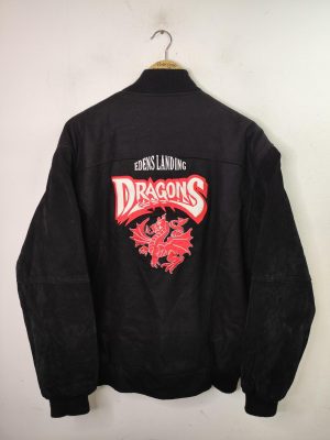 Chaqueta de ante y lana negra con dragón bordado rojo XL