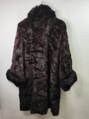 Abrigo de pelo de visón marrón oscuro y negro largo vintage 80s XL XXL