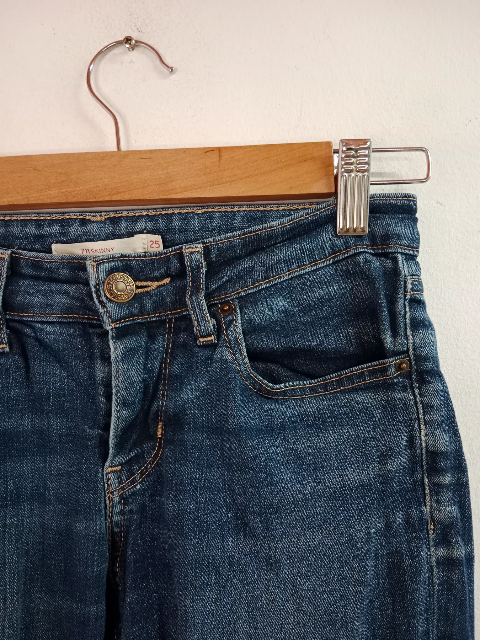Pantalón vaquero largo en color azul marino desgastado y ajustado tipo pitillo. Ideal para primavera y verano en los días más fresquitos o para invierno. Queda genial para combinarlo con alguna camiseta o top chulo o con alguna camisa estampada. Las de cuadros de tipo franela quedan increíbles con el denim, tanto sola como abierta por encima de la camiseta o top.