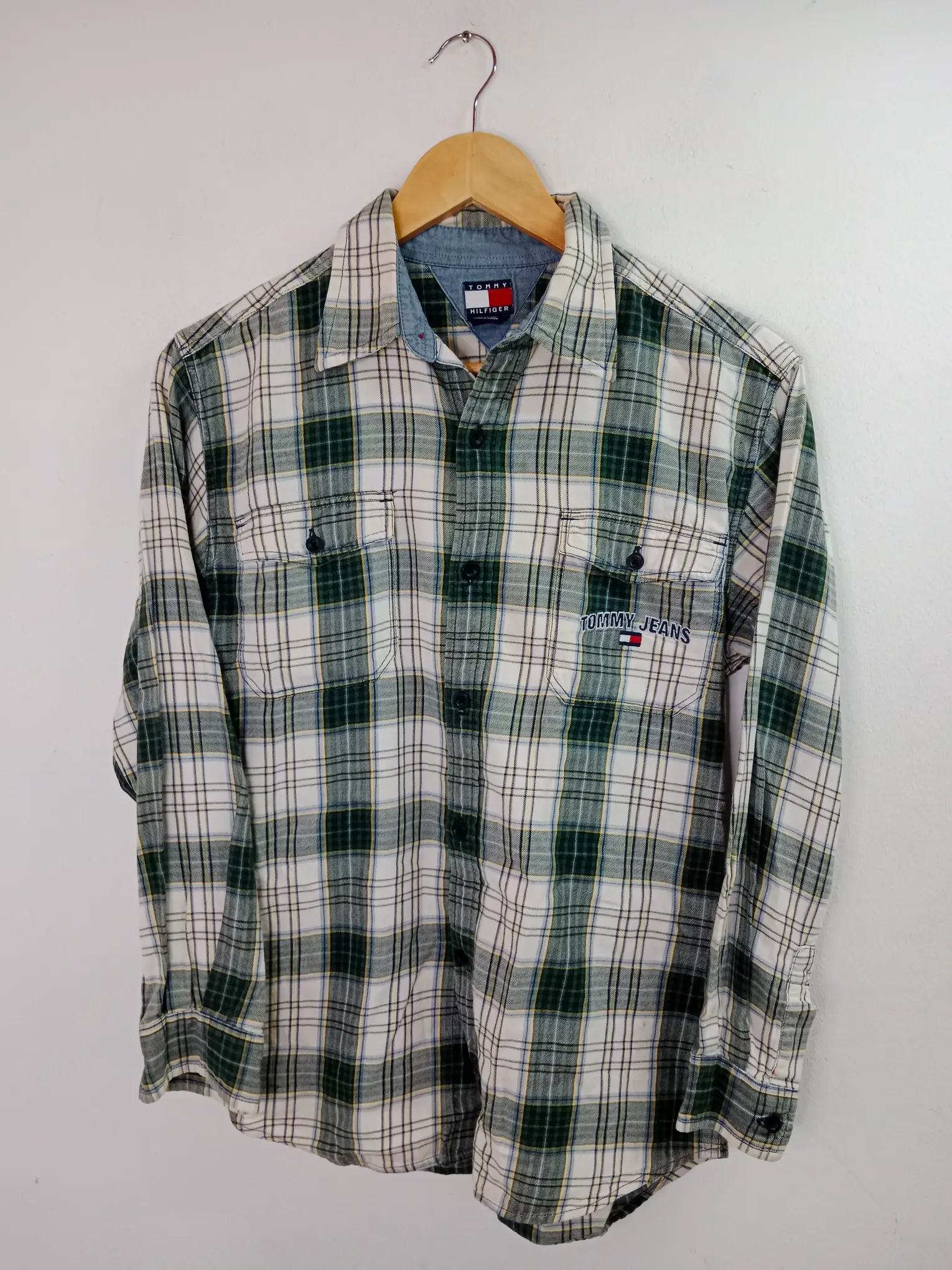Camisa de manga larga con estampado de cuadros en color verde y blanco. Ideal para primavera y verano, para llevarla así en los días de más calor o como sobrecamisa, abierta con una camiseta o top debajo en los días más fresquitos. Queda genial tanto con pantalones largos, como con una falda vaquera o unos shorts.