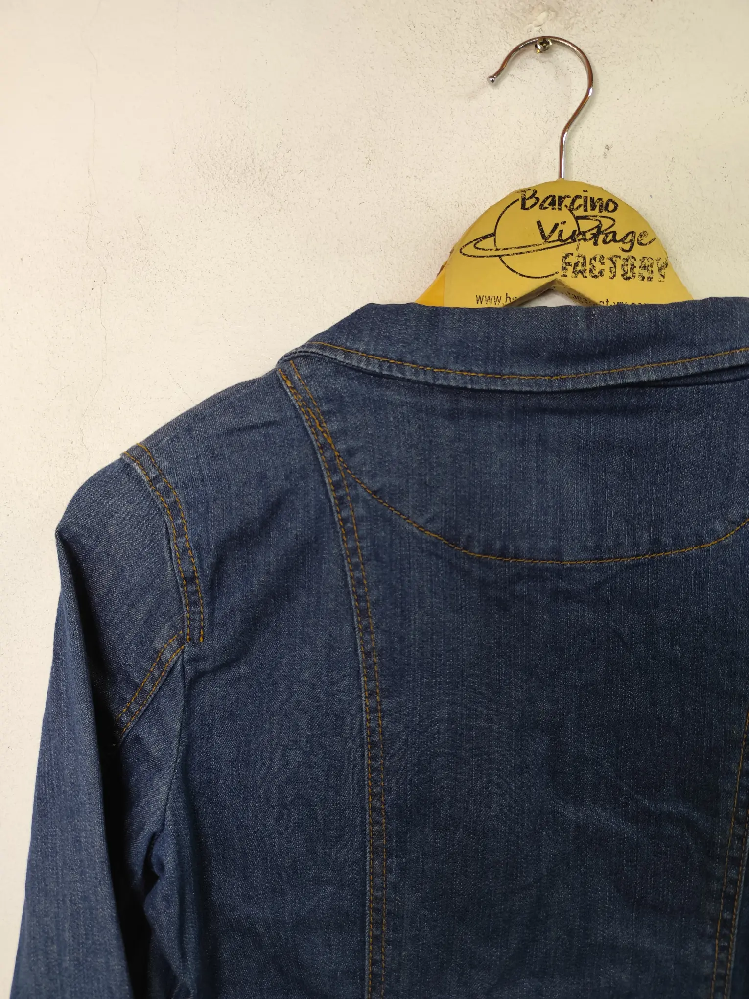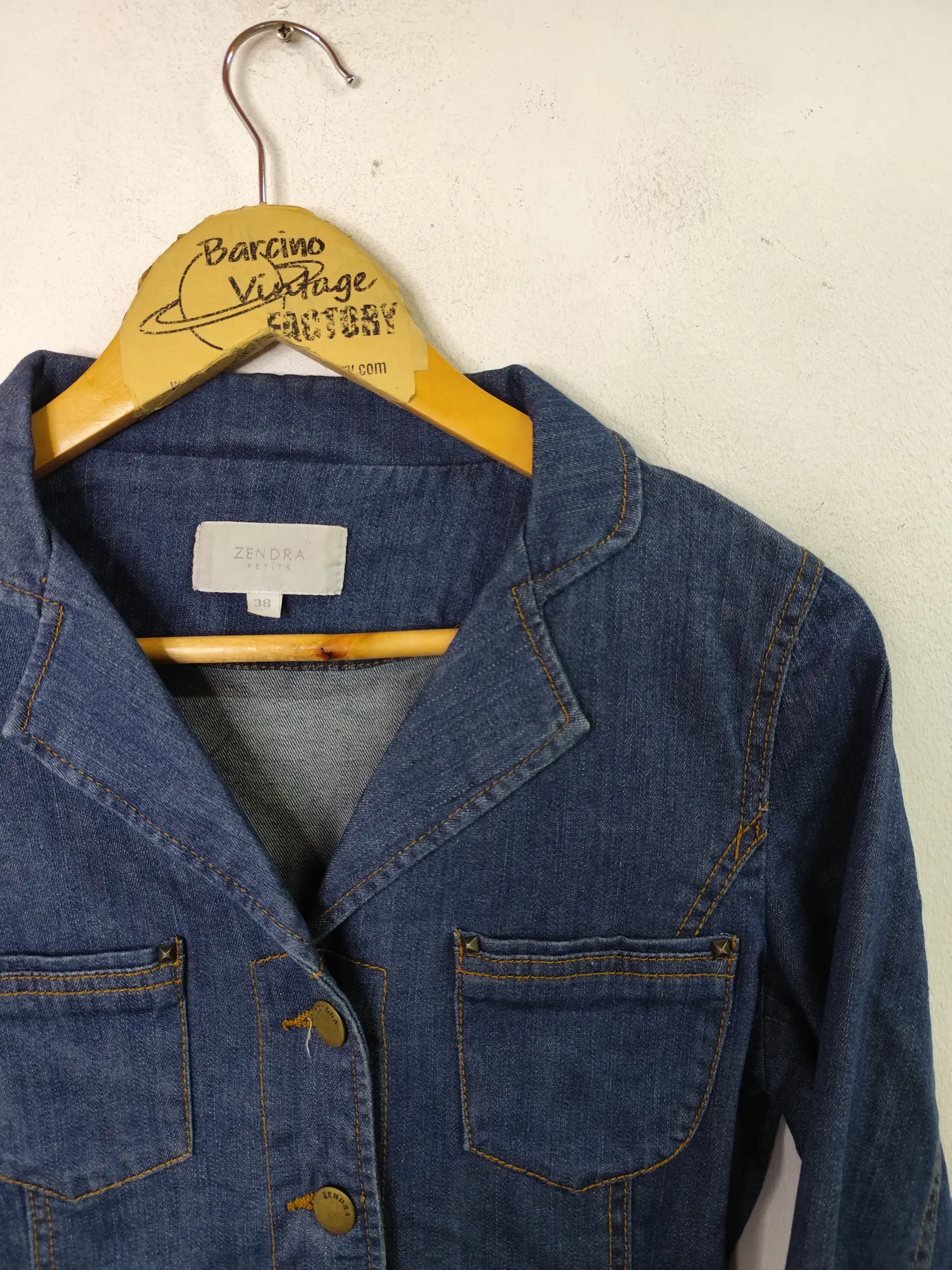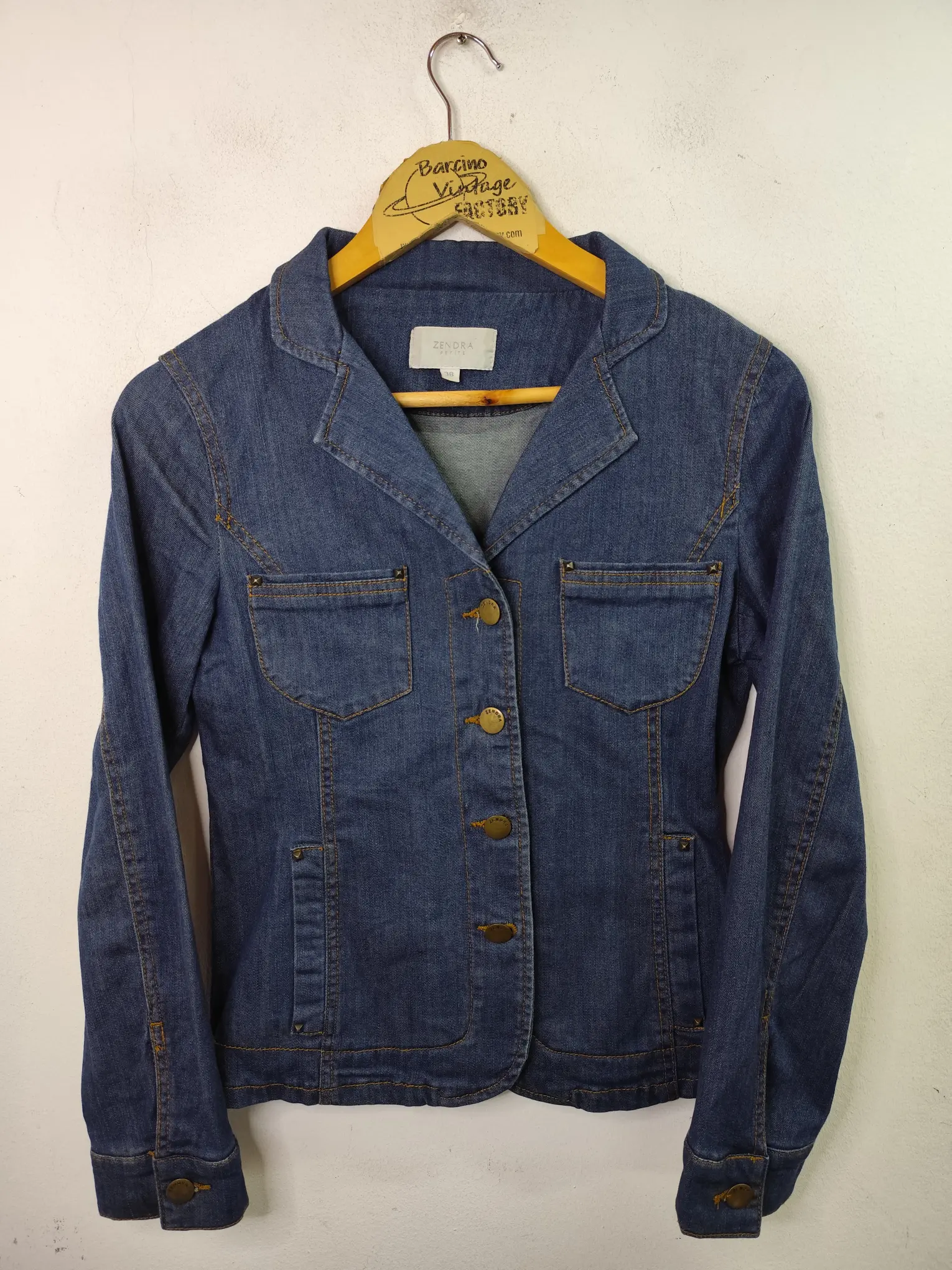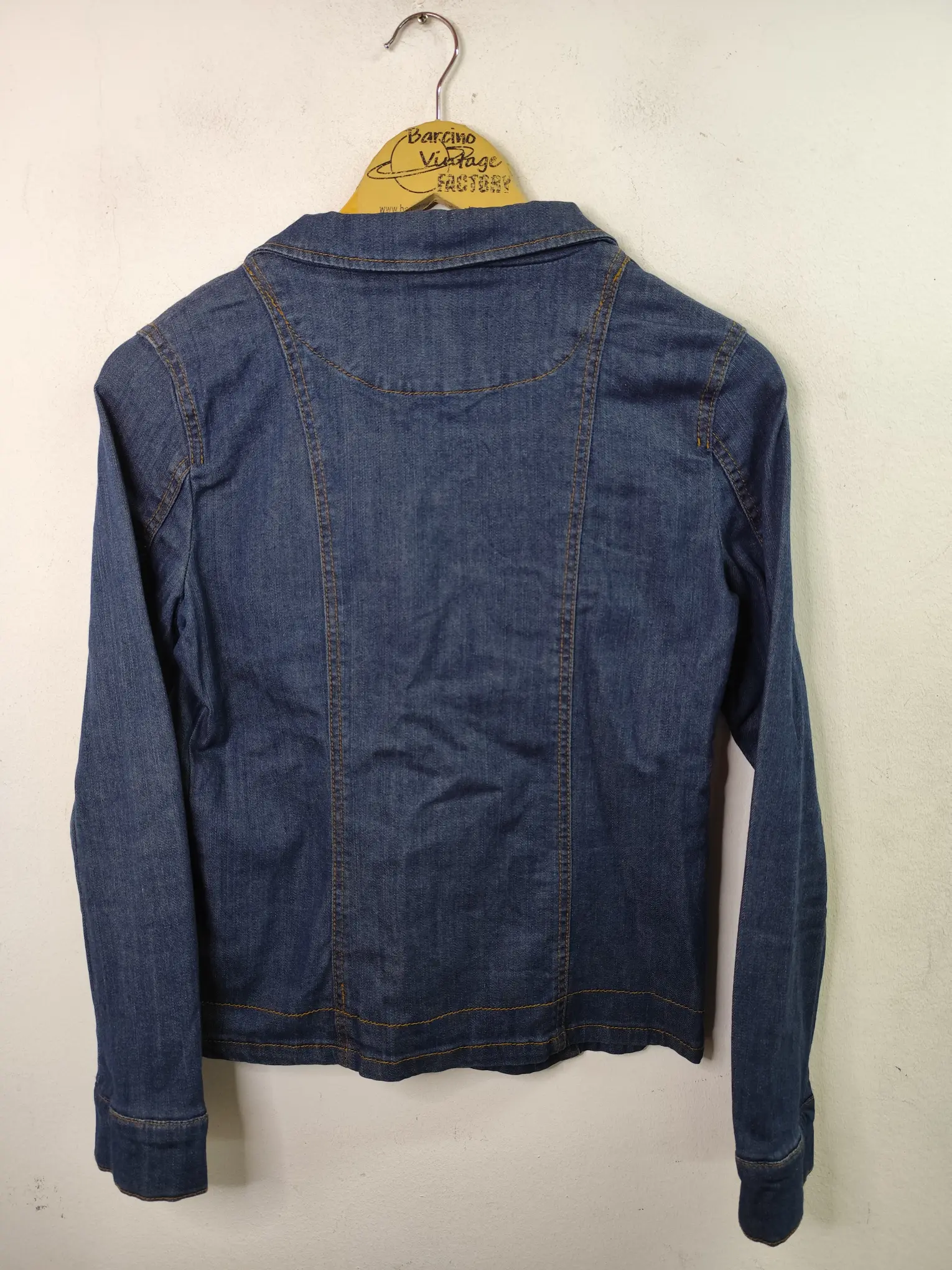 Chaqueta vaquera vintage 00s, Y2K, en color azul marino con botones y el cuello pico, en V. Ideal para primavera y verano en los días más fresquitos. Queda genial tanto con pantalones largos, como también con unas bermudas o unos shorts.