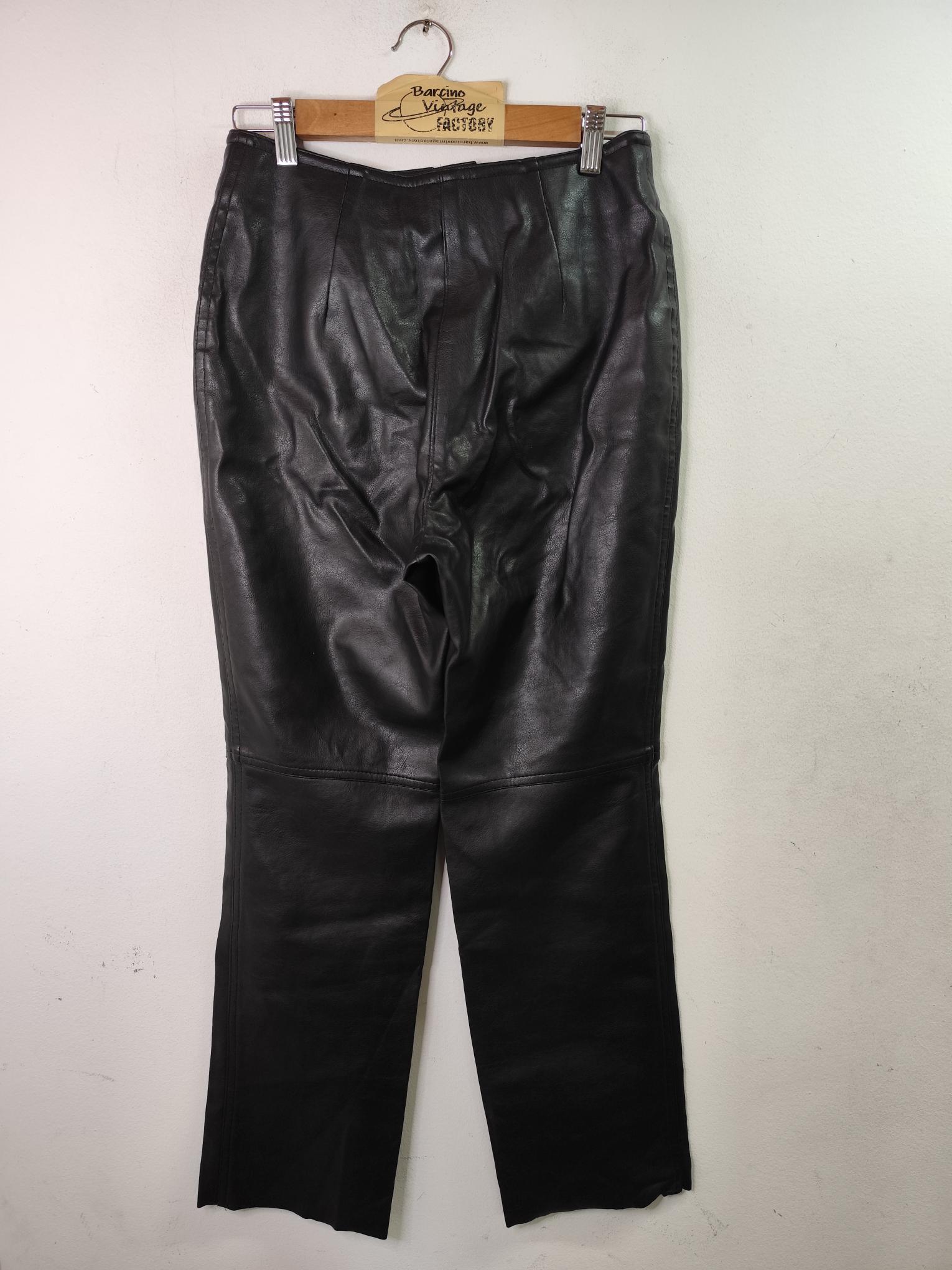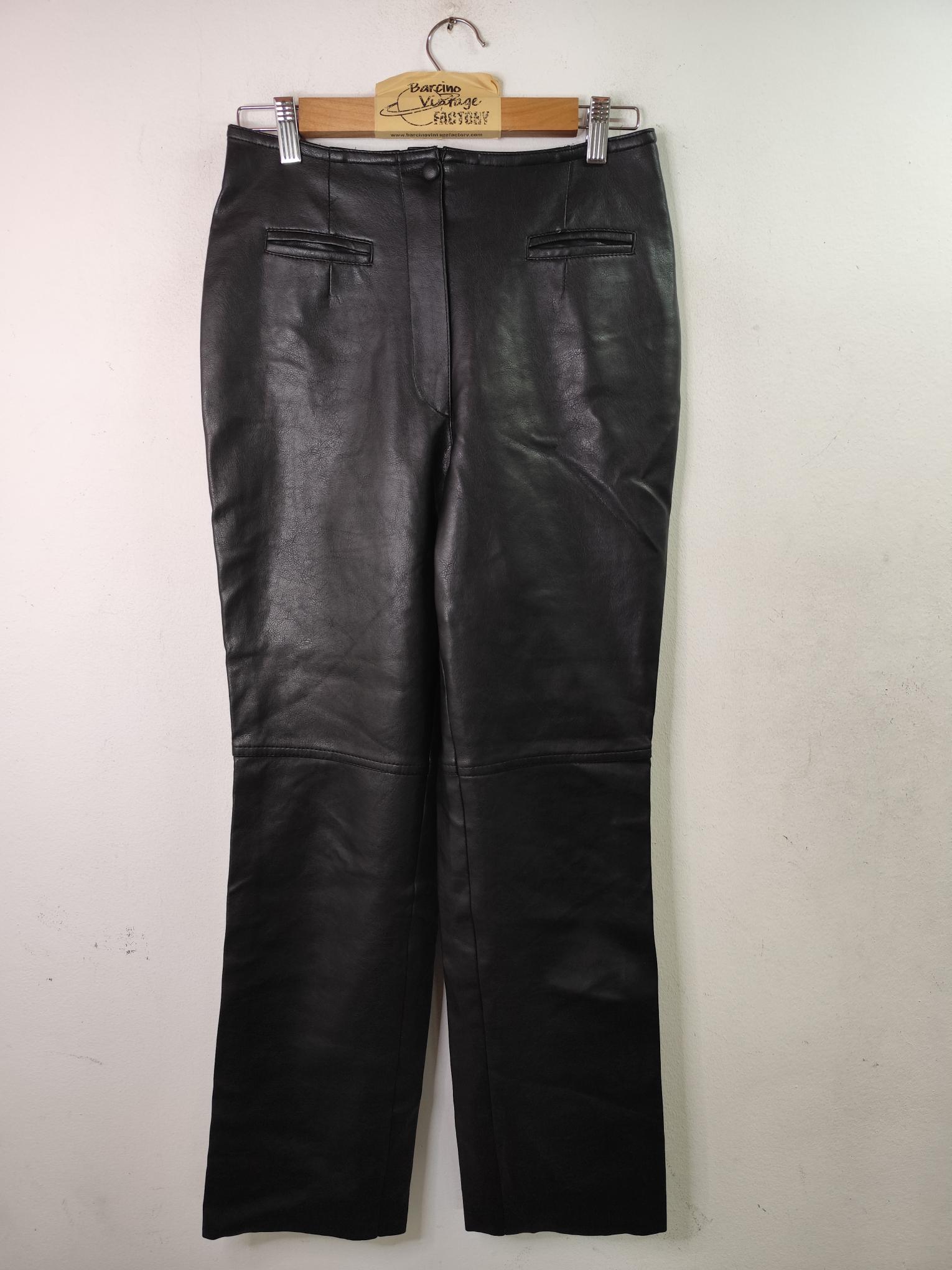 Pantalón vintage 90s de piel sintética en color negro y de pierna recta tipo boyfriend fit. Ideal para invierno y otoño en los días más fresquitos. Queda genial para combinarlo con alguna camisa o blusa chula o con algún jersey de punto. Las camisas de cuadros de tipo franela también quedan increíbles con el cuero negro, tanto sola como abierta por encima de una camiseta o top. Si quieres llevar un total look de cuero, combinarlo con una cazadora de piel es tu opción ideal.