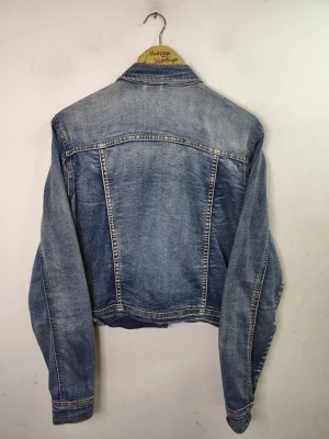 Chaqueta vaquera tipo cazadora en color azul marino con botones. Ideal para primavera y verano en los días más fresquitos o para invierno para usarla debajo del abrigo. Queda genial tanto con pantalones vaqueros como con pantalones de pinzas o incluso con una falda, ya sea vaquera o de otra tela.