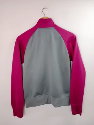 Chaqueta deportiva tipo track jacket en color gris con detalles en negro y naranja, con cremallera. Ideal para primavera y verano en los días más fresquitos o para invierno para usarla como sudadera debajo del abrigo. Queda genial tanto con pantalones vaqueros como con pantalones deportivos o incluso con una falda si quieres darle un aire diferente a tu look.