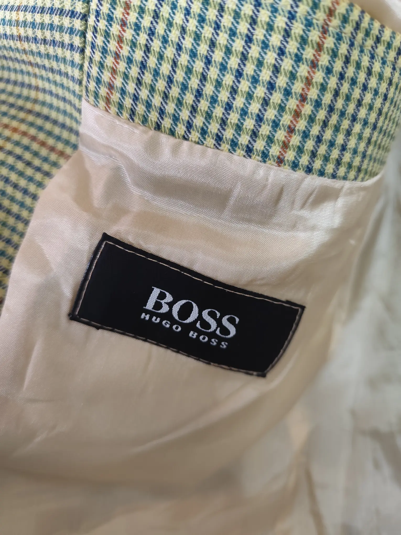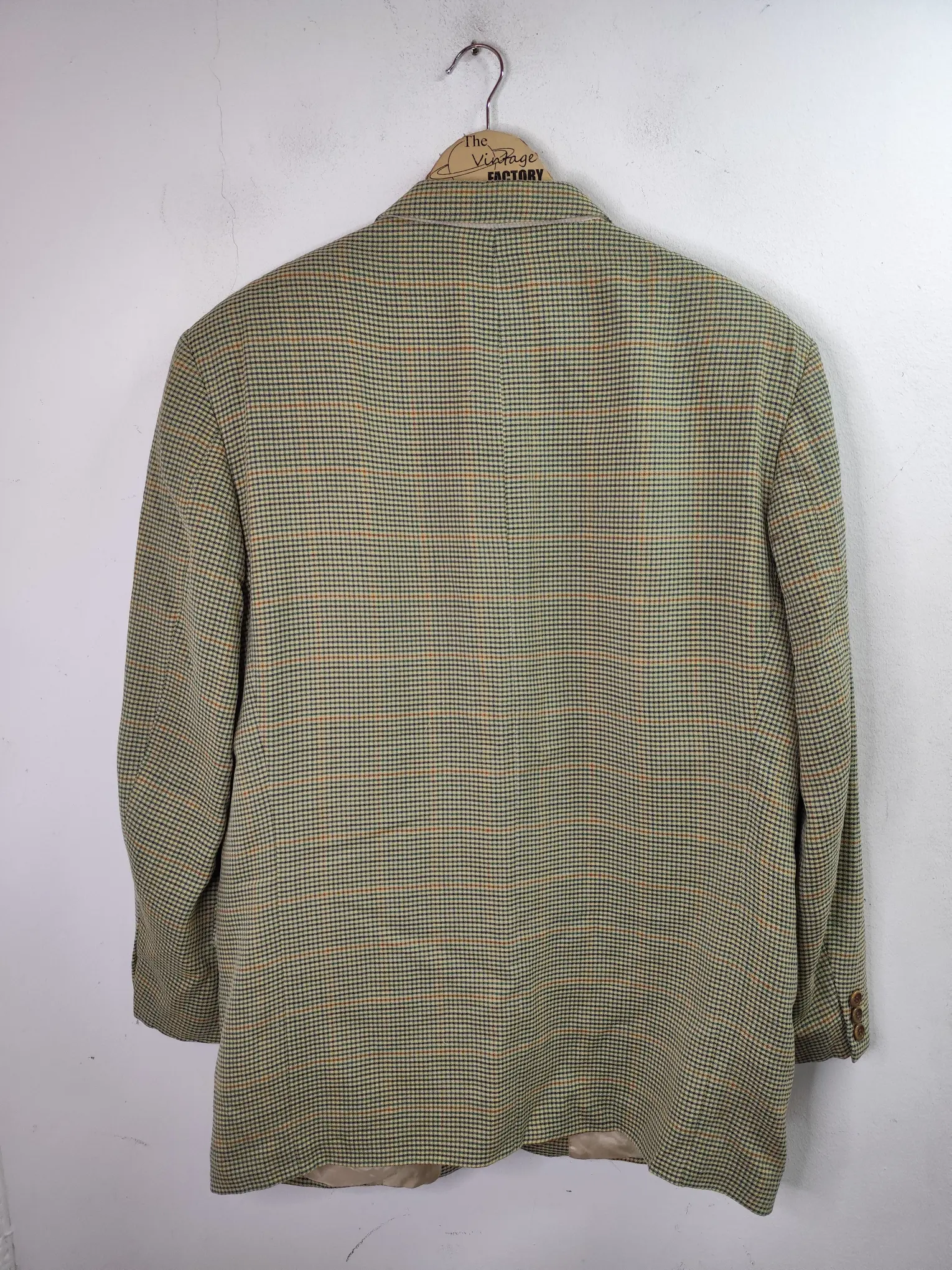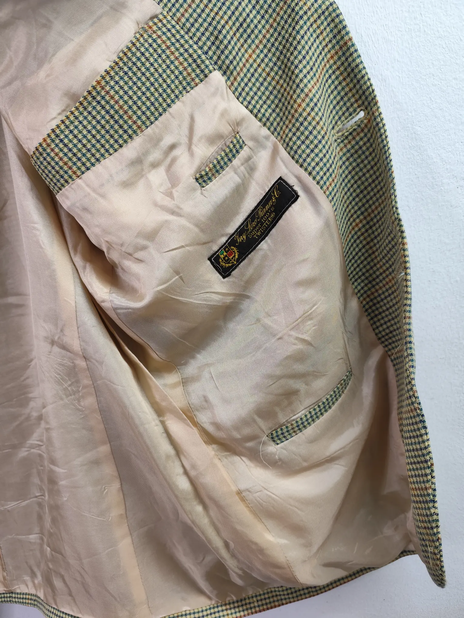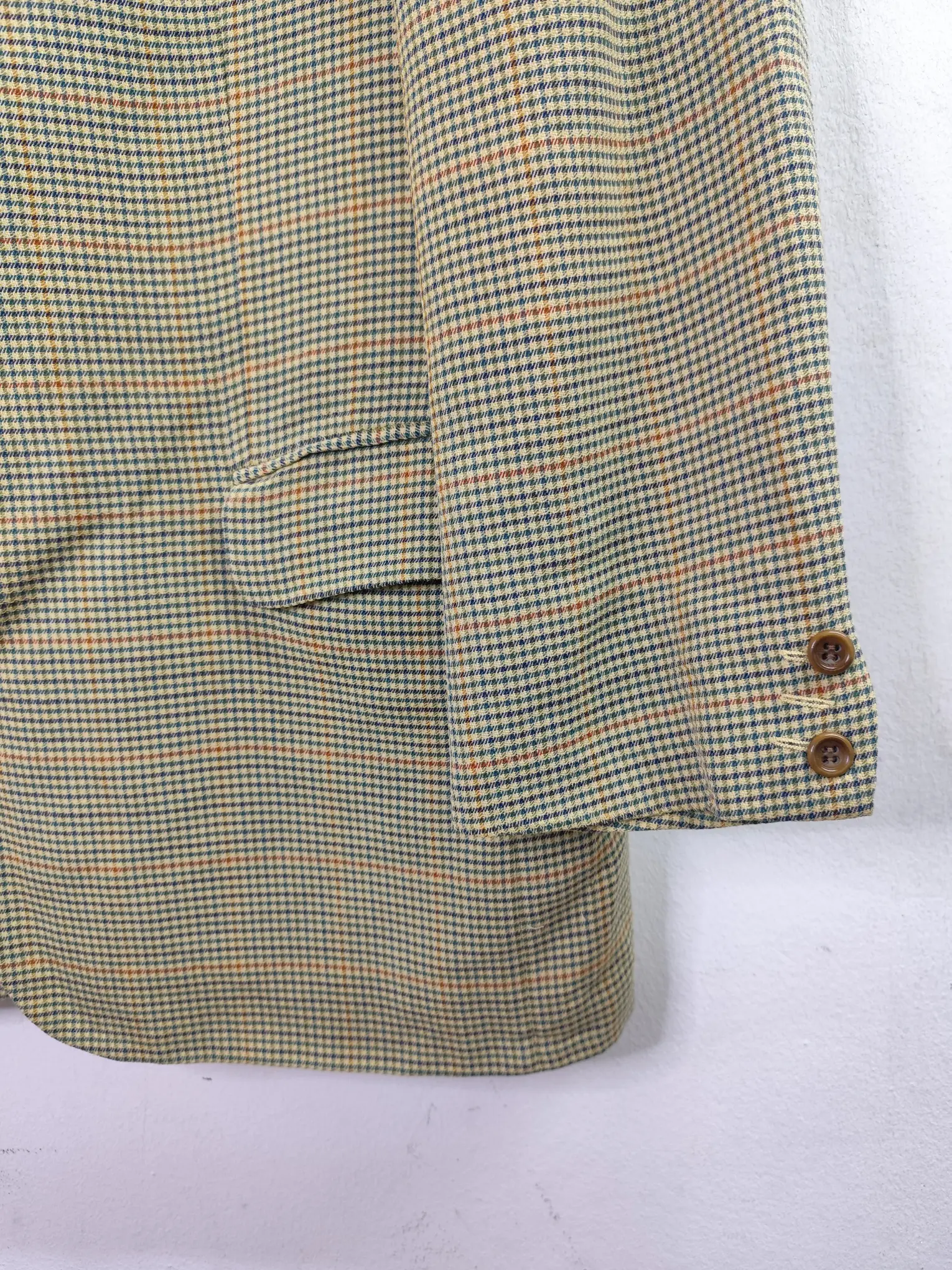 Americana vintage tipo blazer con botones de lana en color verde y amarillo con estampado de cuadros. Ideal para primavera y verano en los días más fresquitos o para invierno para usarla debajo del abrigo. Queda genial tanto con pantalones vaqueros como con pantalones de pinzas o incluso con una falda para darle un rollo moderno y diferente a tu look.