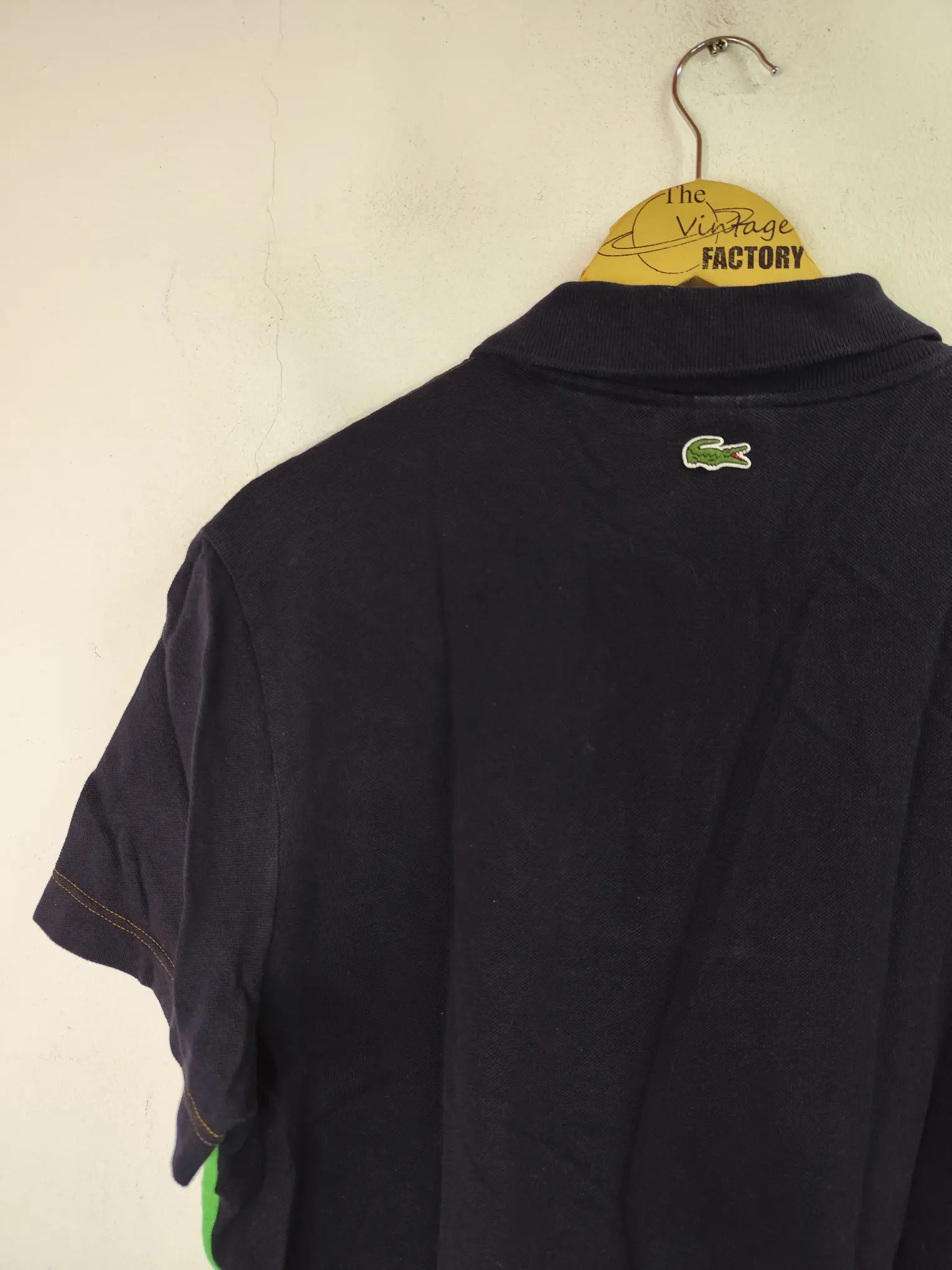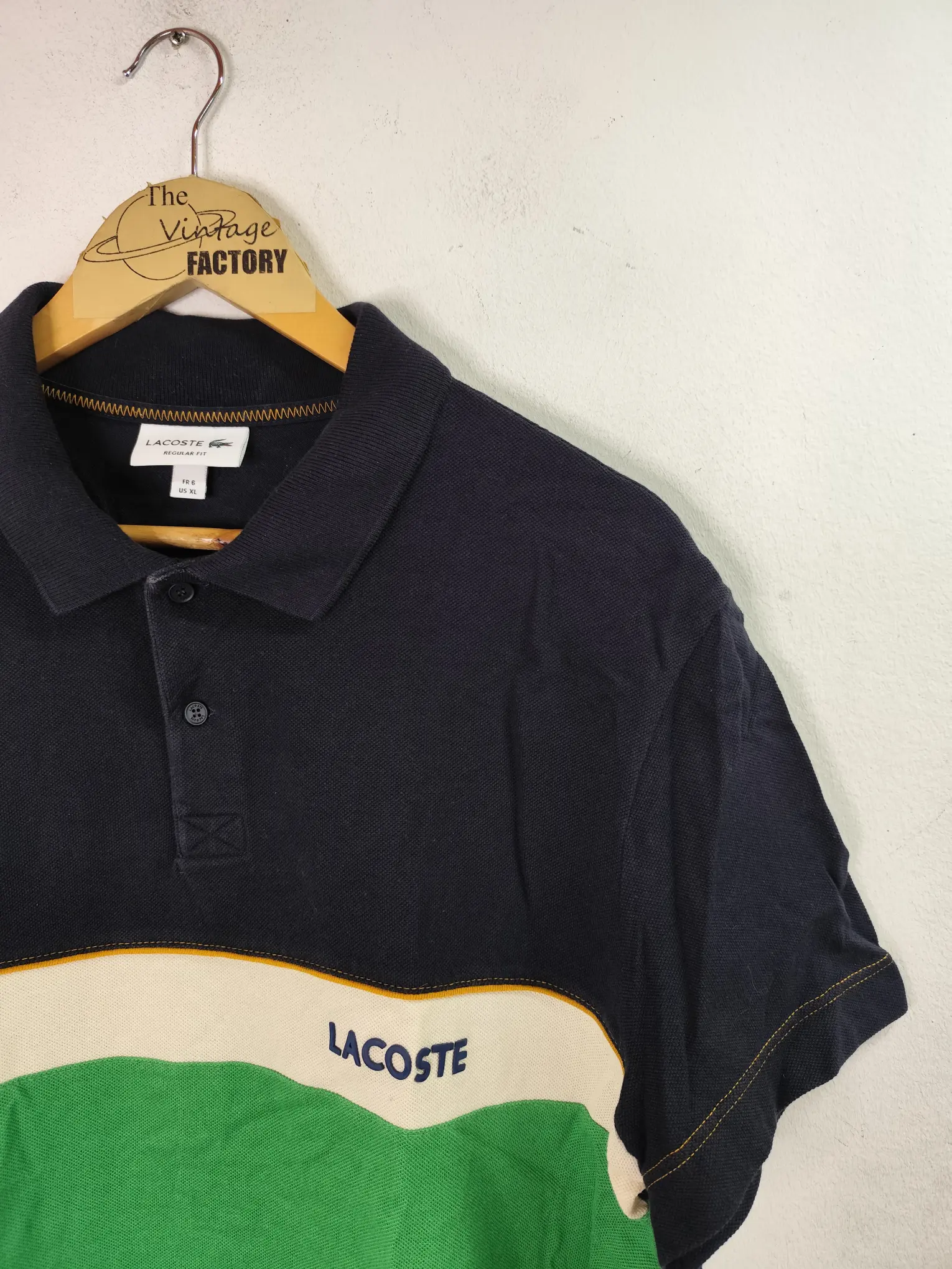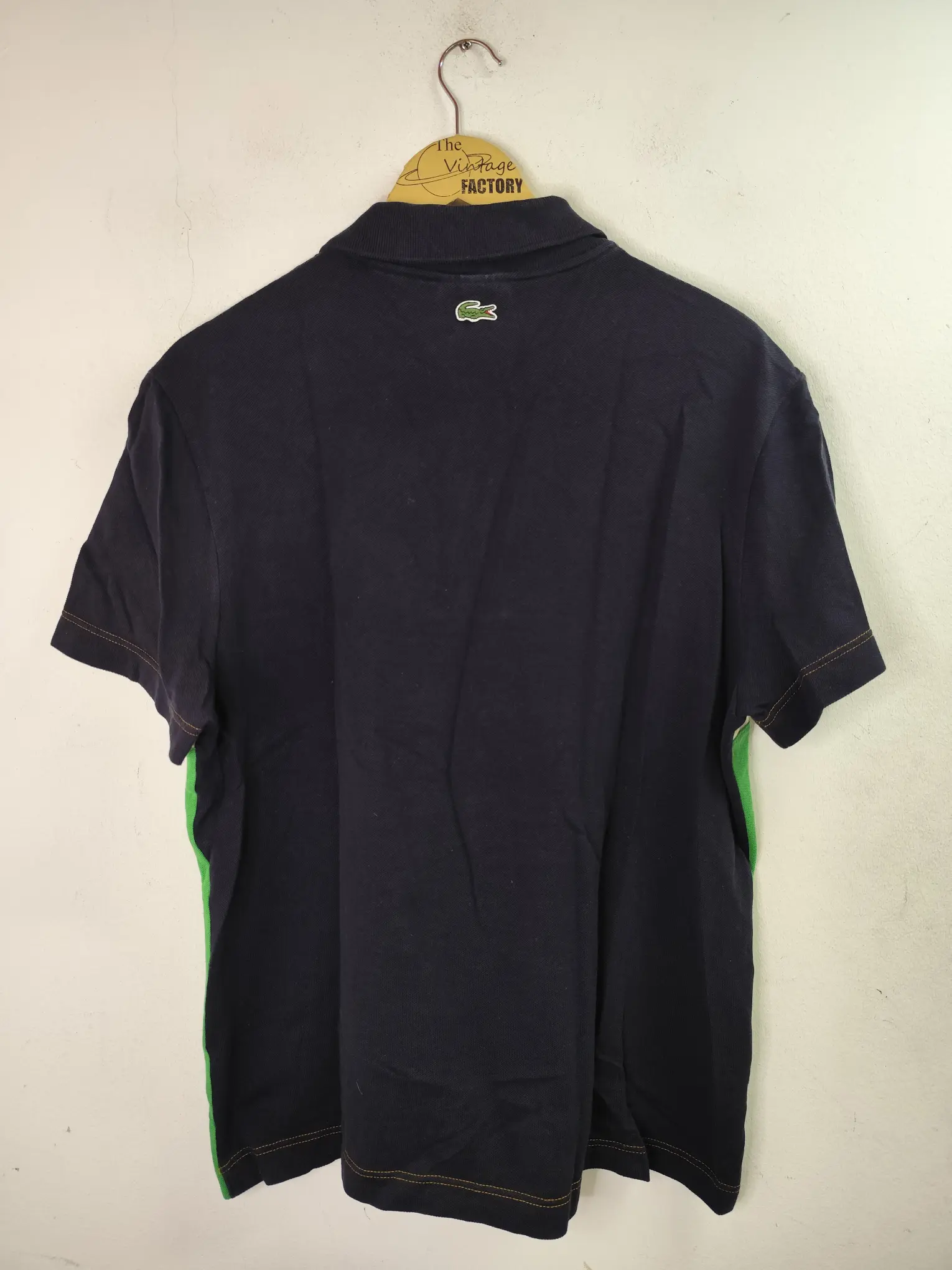 Polo de manga corta Lacoste vintage de algodón en color azul marino y verde con una franja horizontal en blanco regular fit.