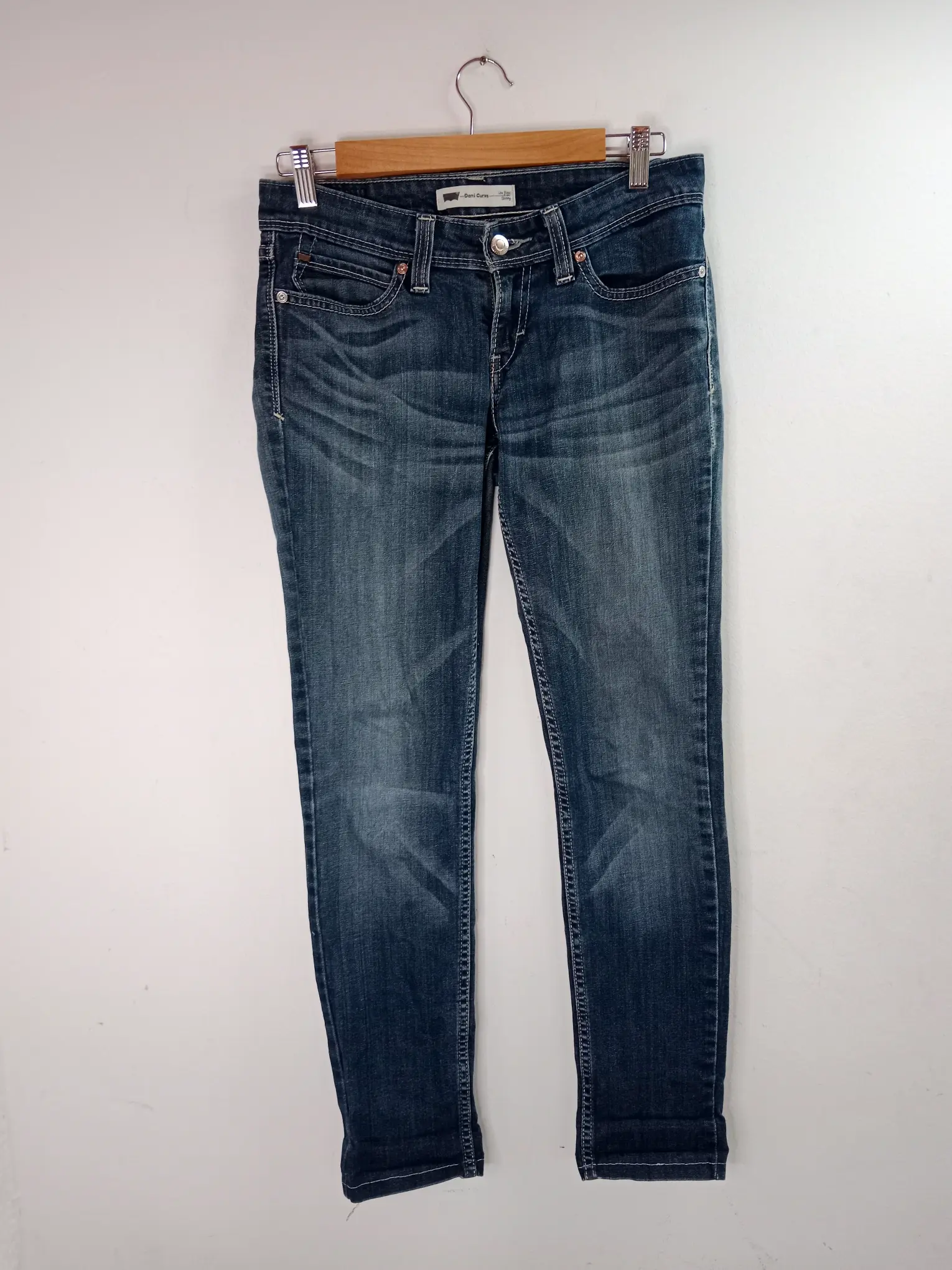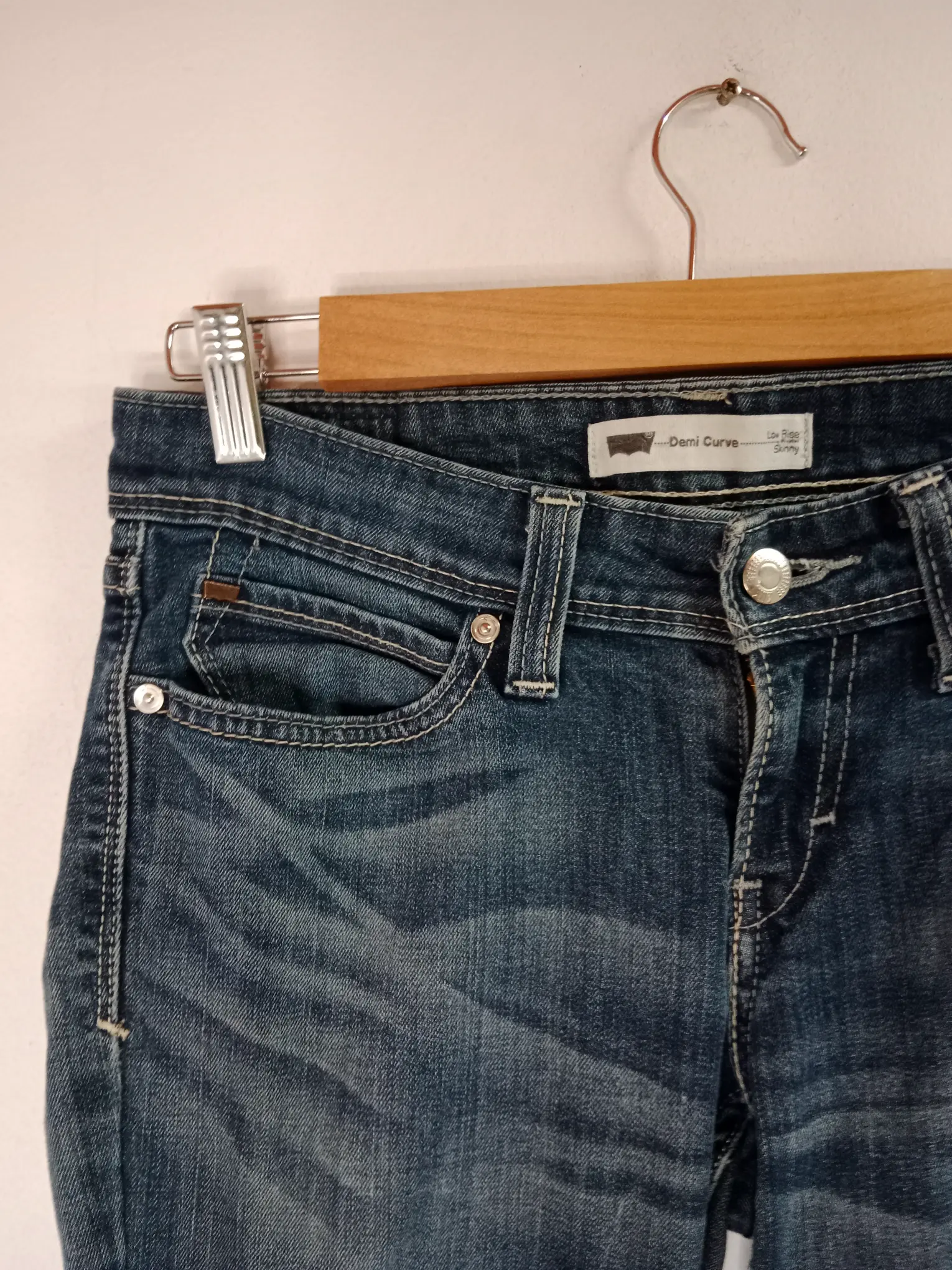 Pantalón vaquero Levi’s demi curve low rise skinny en color azul marino desgastado y ajustado, tipo pitillo. Ideal para primavera y verano en los días más fresquitos o para invierno. Queda genial para combinarlo con alguna camiseta o top chulo o con alguna camisa estampada. Las de cuadros de tipo franela quedan increíbles con el denim, tanto sola como abierta por encima de la camiseta o top.