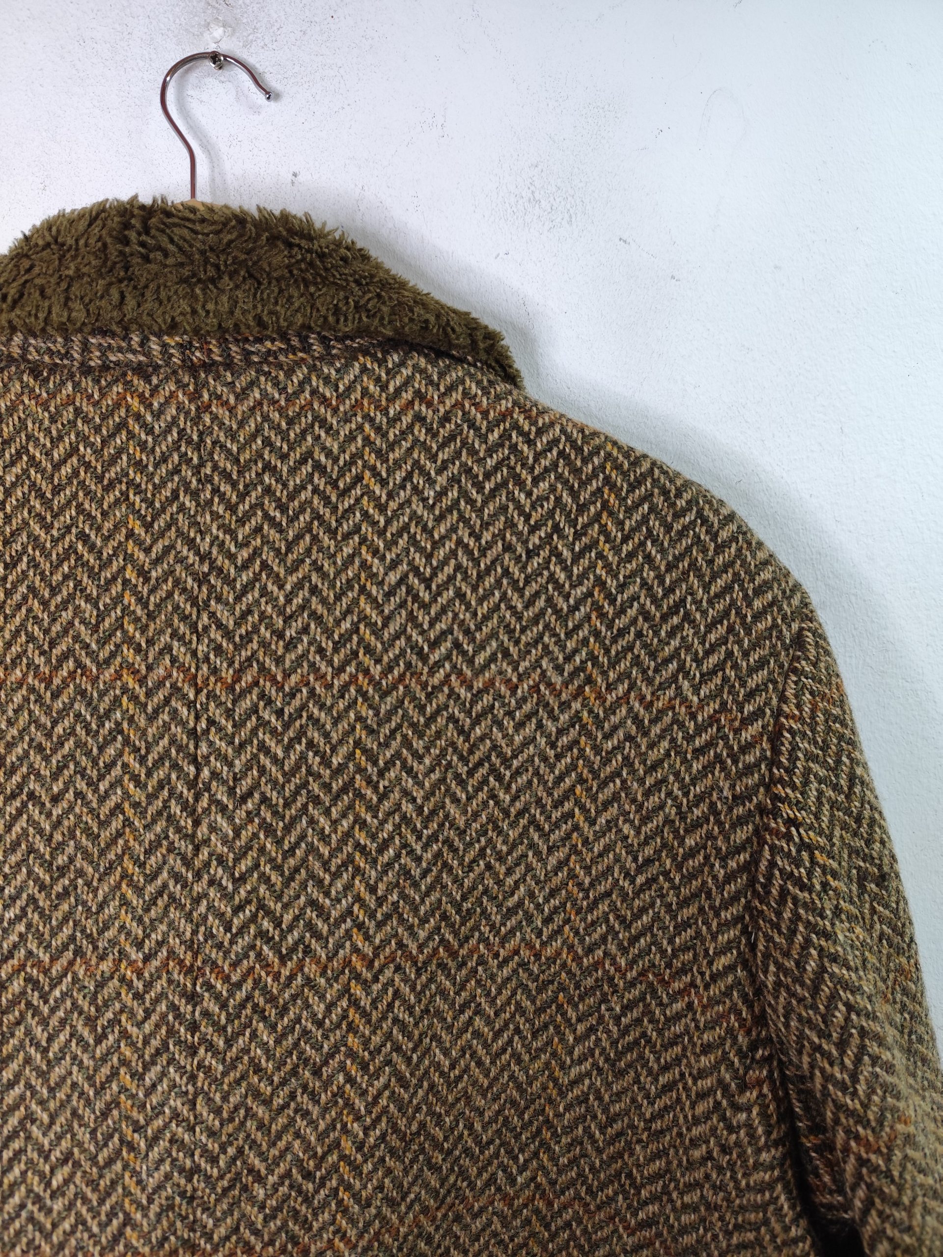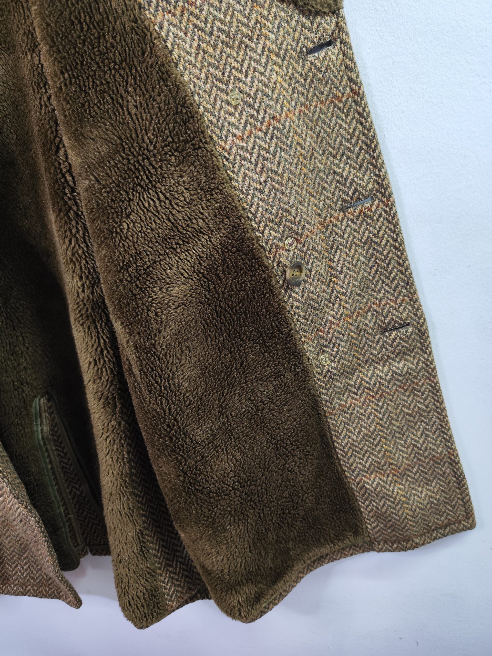 Abrigo largo con botones y borreguito en el interior en marrón y verde jaspeado. Ideal para los días más fríos de invierno para usarla con más capas debajo del abrigo, como una sudadera o jersey de punto. Queda genial tanto con pantalones vaqueros como con pantalones tipo chinos o de pinzas, o incluso con una falda.