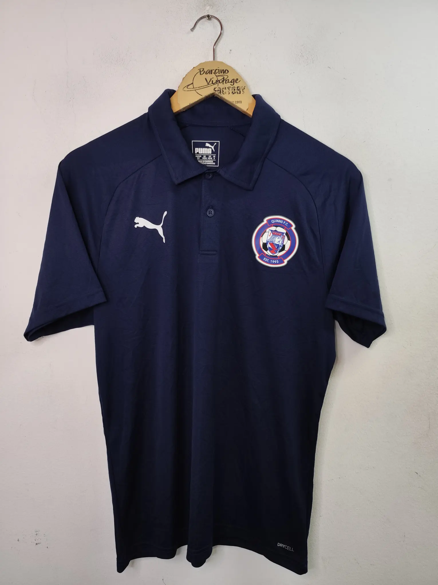 Polo Puma deportivo técnico, Quinns FC 1993, de manga corta en color azul marino con estampado del logo frontal. Ideal para primavera y verano o para invierno para llevarlos con alguna cazadora vaquera o track jacket abierta. Queda genial tanto con pantalones vaqueros como con pantalones deportivos o incluso con una falda si quieres darle un aire diferente a tu look.