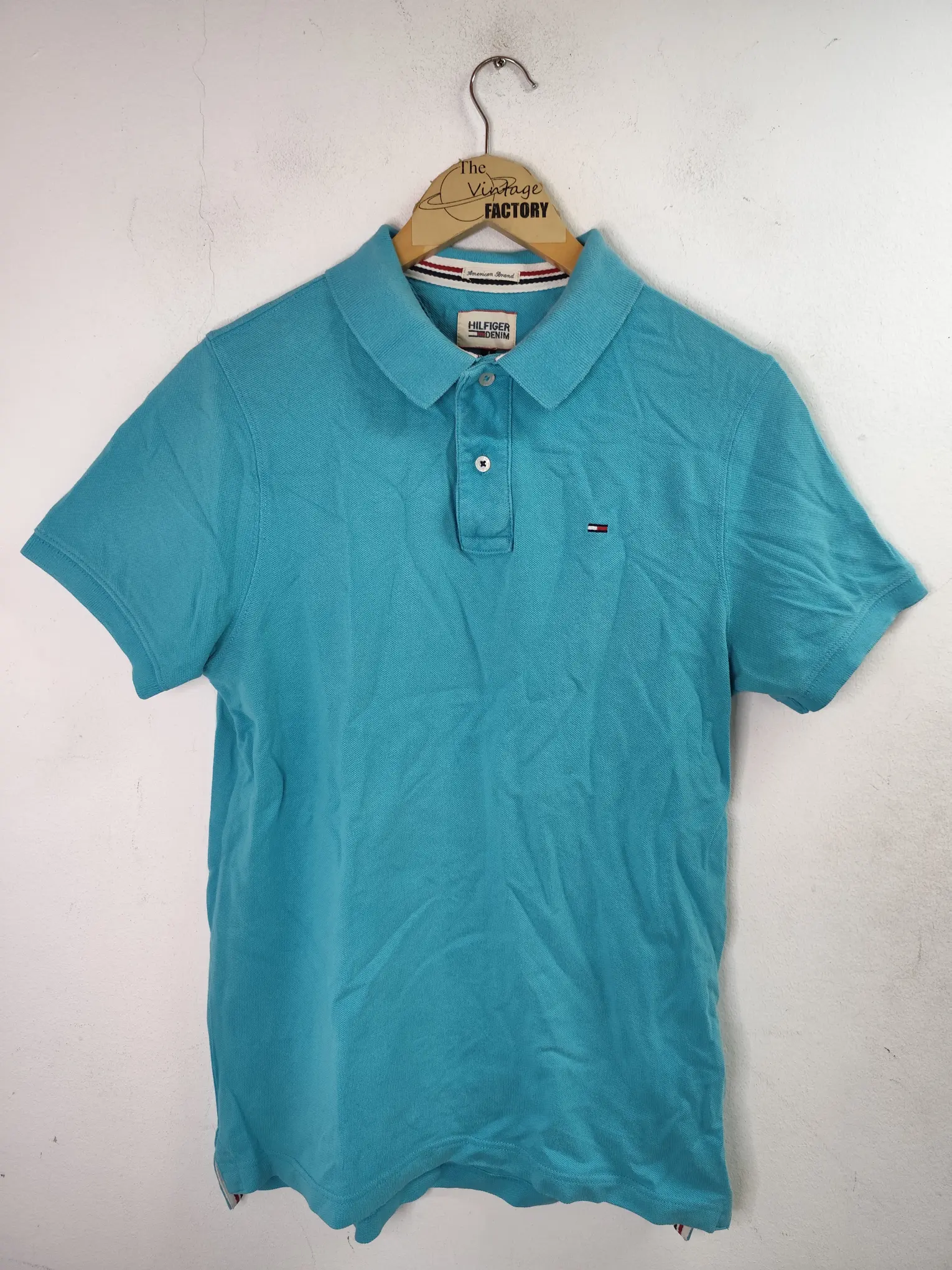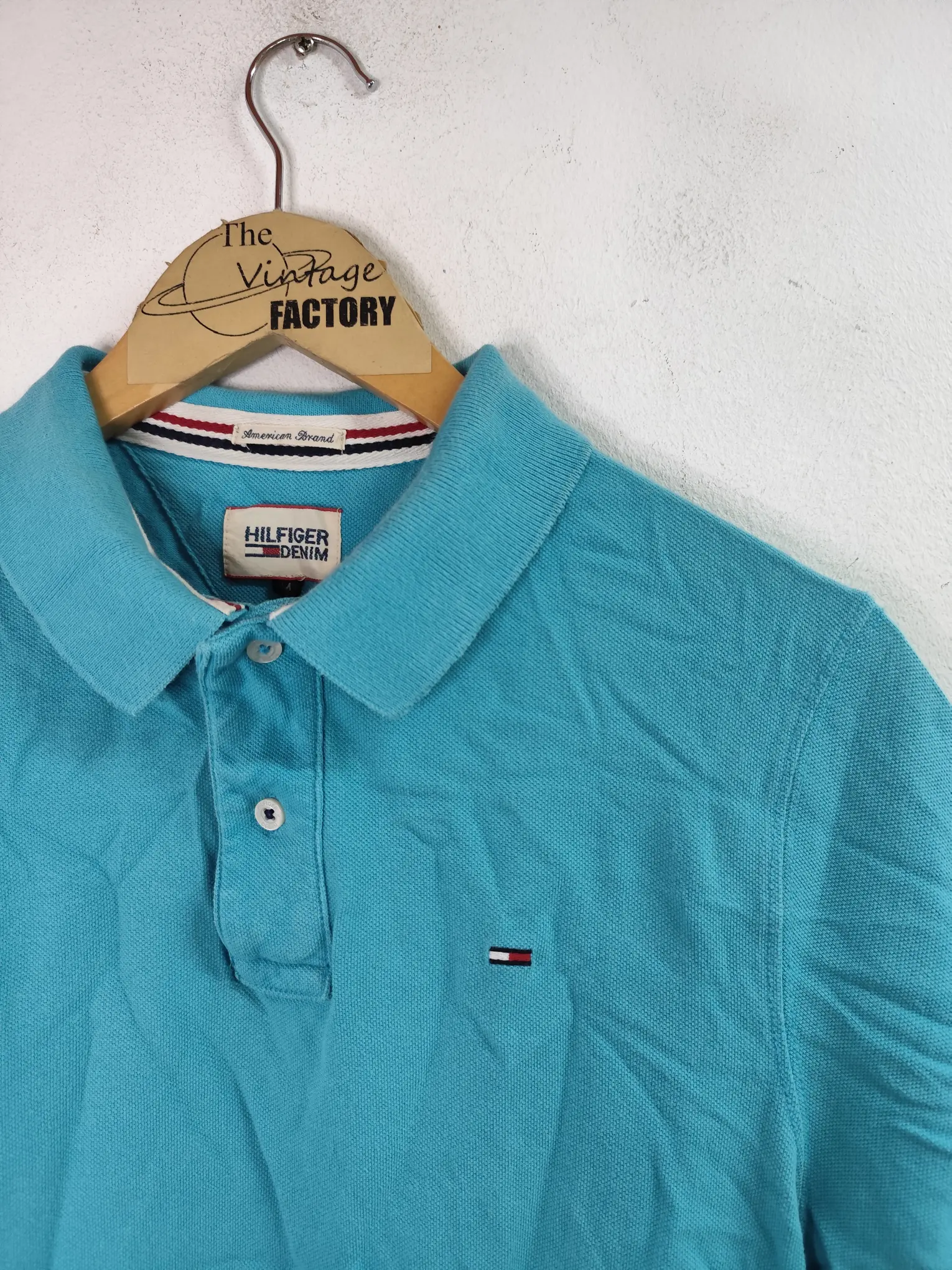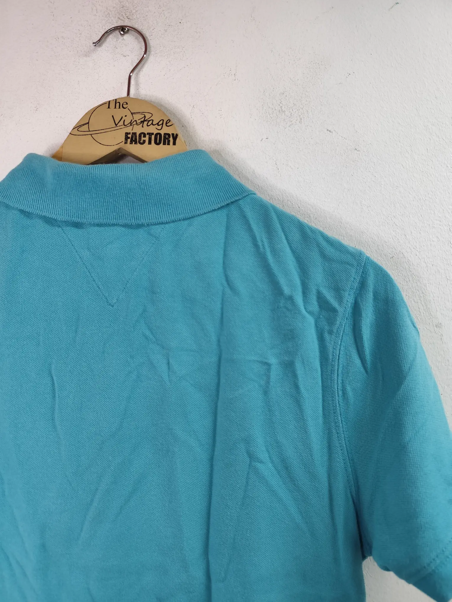 Polo de manga corta de algodón en color azul claro turquesa. Ideal para primavera y verano o para invierno para llevarlos con alguna cazadora vaquera o camisa por encima abierta. Queda genial tanto con pantalones vaqueros como con pantalones deportivos o incluso con una falda si quieres darle un aire diferente a tu look.