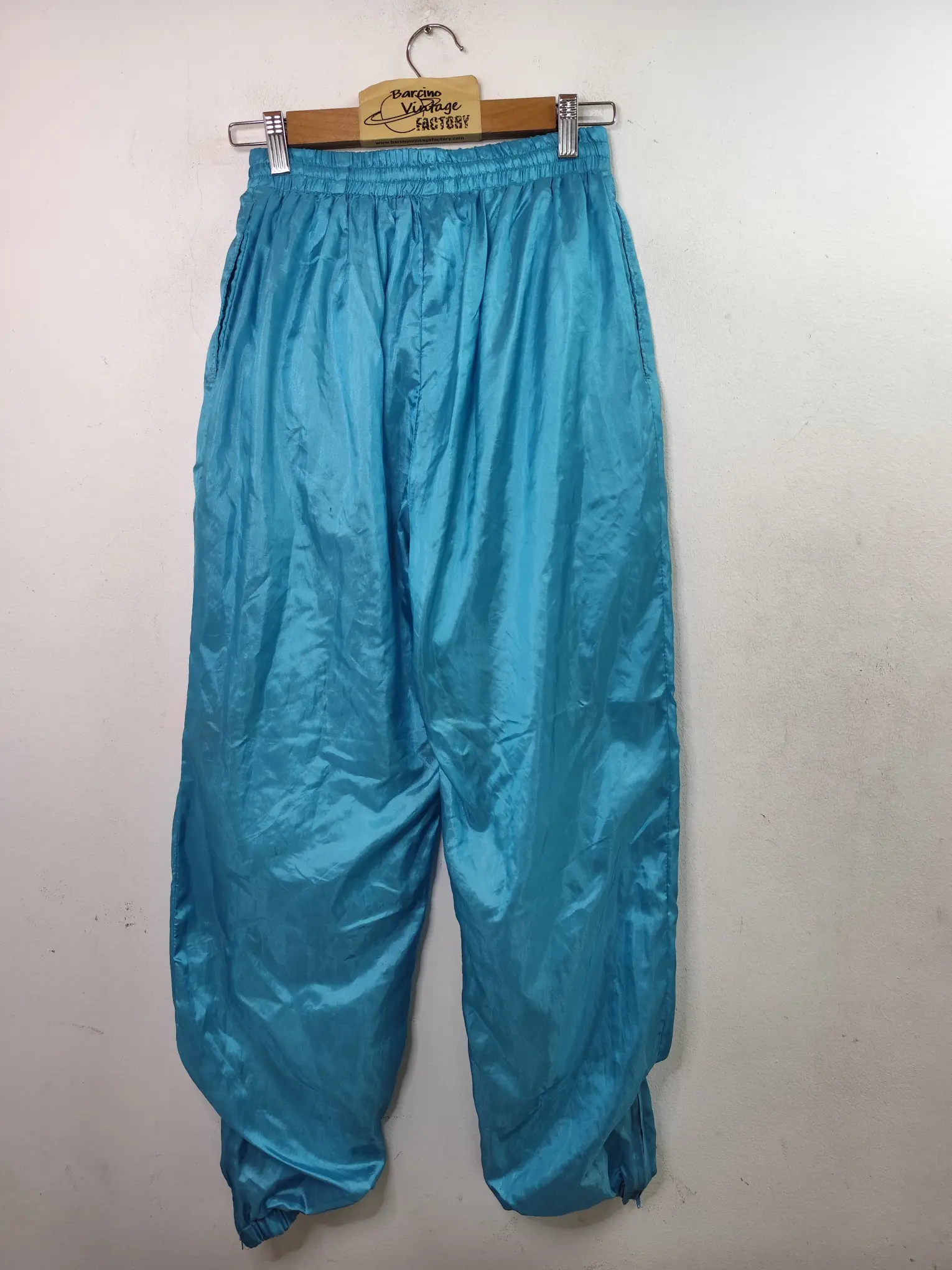 Pantalón vintage 80s largo deportivo tipo track pants de táctel con forro interior en color azul con detalles en rojo y violeta. Ideal para primavera y verano en los días más fresquitos, tanto para ir a entrenar como para combinarlo con alguna camiseta chula o algún polo vintage técnico deportivo con algún bordado y darle un giro a tu look.