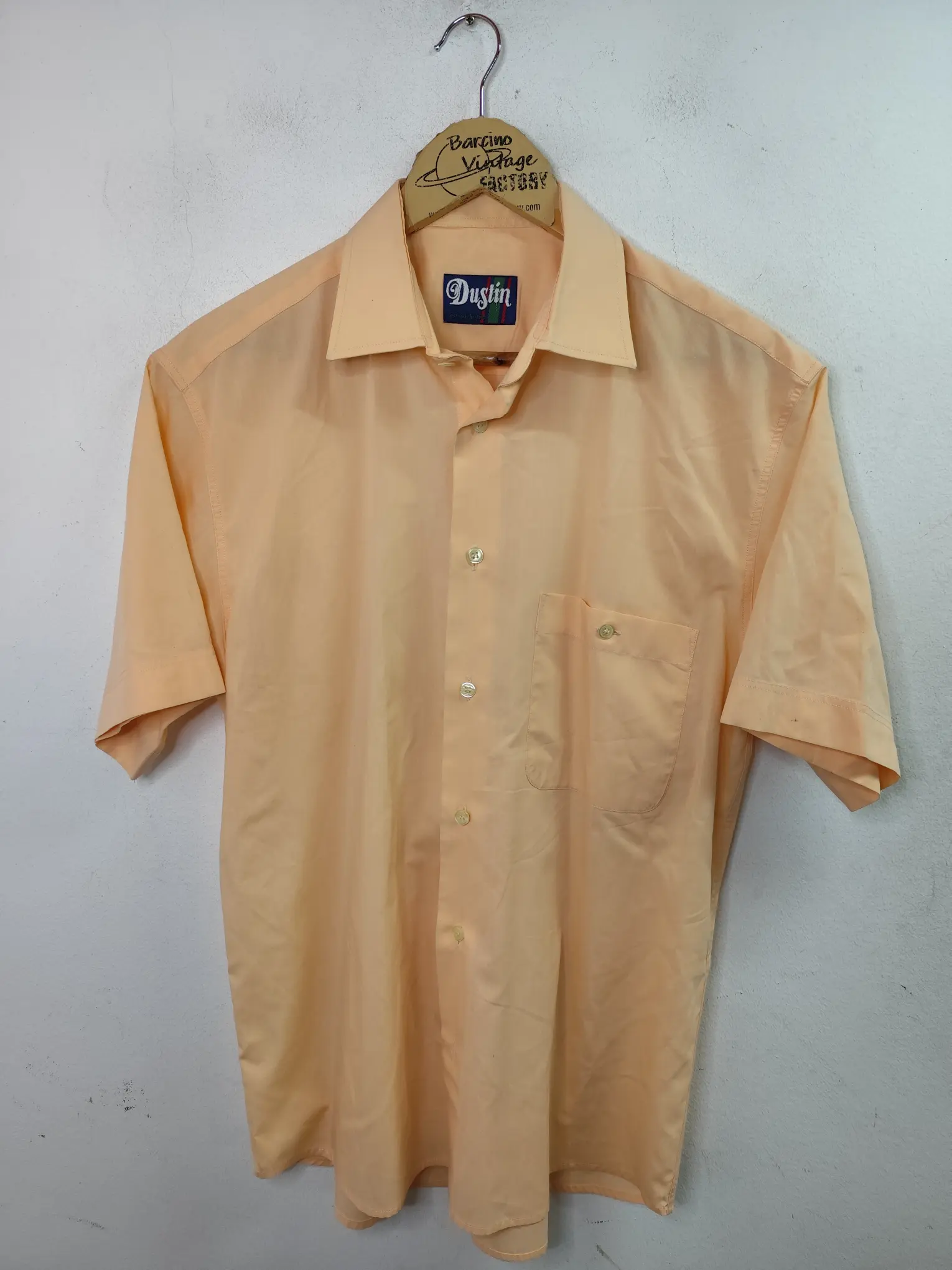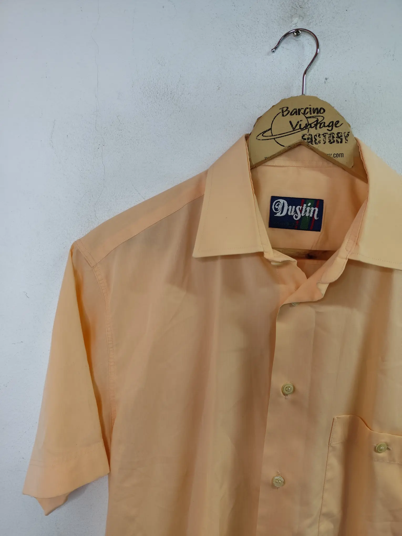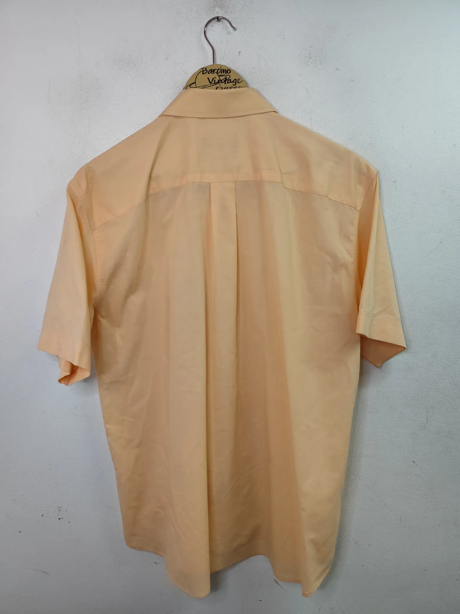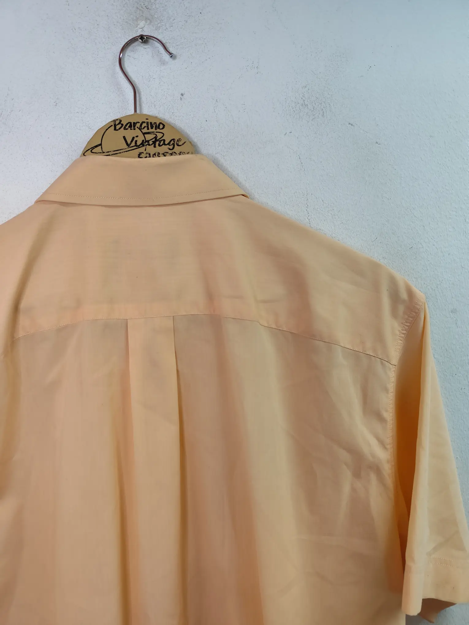 Camisa vintage estilo años 80s de manga corta en color naranja pastel con un bolsillo. Ideal para primavera y verano, para llevarla así en los días de más calor o como sobrecamisa, abierta con una camiseta o top debajo en los días más fresquitos. Queda genial tanto con pantalones largos, como con una falda vaquera o unos shorts.